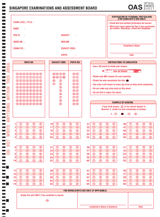 The applicant will need a pencil to shade the answers on the Optical Answer Sheet (OAS) provided. |